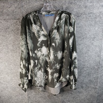 Simply Vera Vera Wang Button Front Blouse Top Womens L Large White Solid Glitter $34.88 Buy It Now or Best Offer